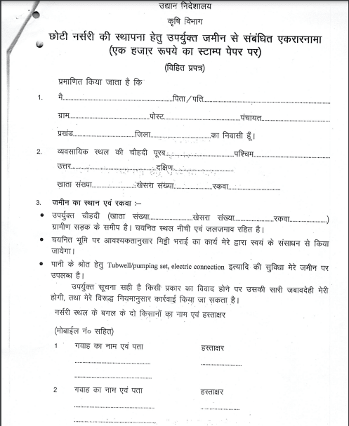 - Bihar Avocado Nursery Yojana 2025 मे ऑनलाइन अप्लाई करने से पहले आपको एकरारनामा फॉर्म को डाउनलोड करना होगा जिसके लिए इस PDF File को डाउनलोड करना होगा जो कि, इस प्रकार का होगा –