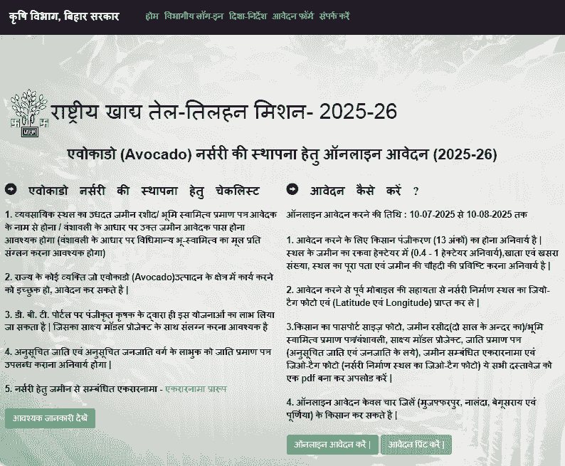 Direct Hyperlink To Apply On-line In Bihar Avocado Nursery Yojana 2025 |