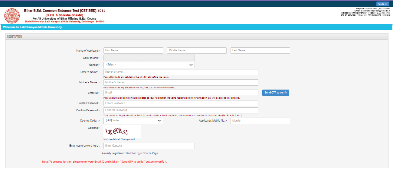 Step 2 – Login & Apply On-line For Bihar B.Ed CET Admission 2025