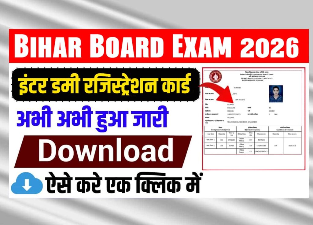 इस लेख में हम आपको Bihar Board twelfth Dummy Registration Card 2026 से संबंधित पूरी जानकारी देंगे। अगर आप भी इंटर वार्षिक परीक्षा 2026 में शामिल होने जा रहे हैं, तो यह लेख आपके लिए बेहद उपयोगी है। कृपया इसे अंत तक जरूर पढ़ें।