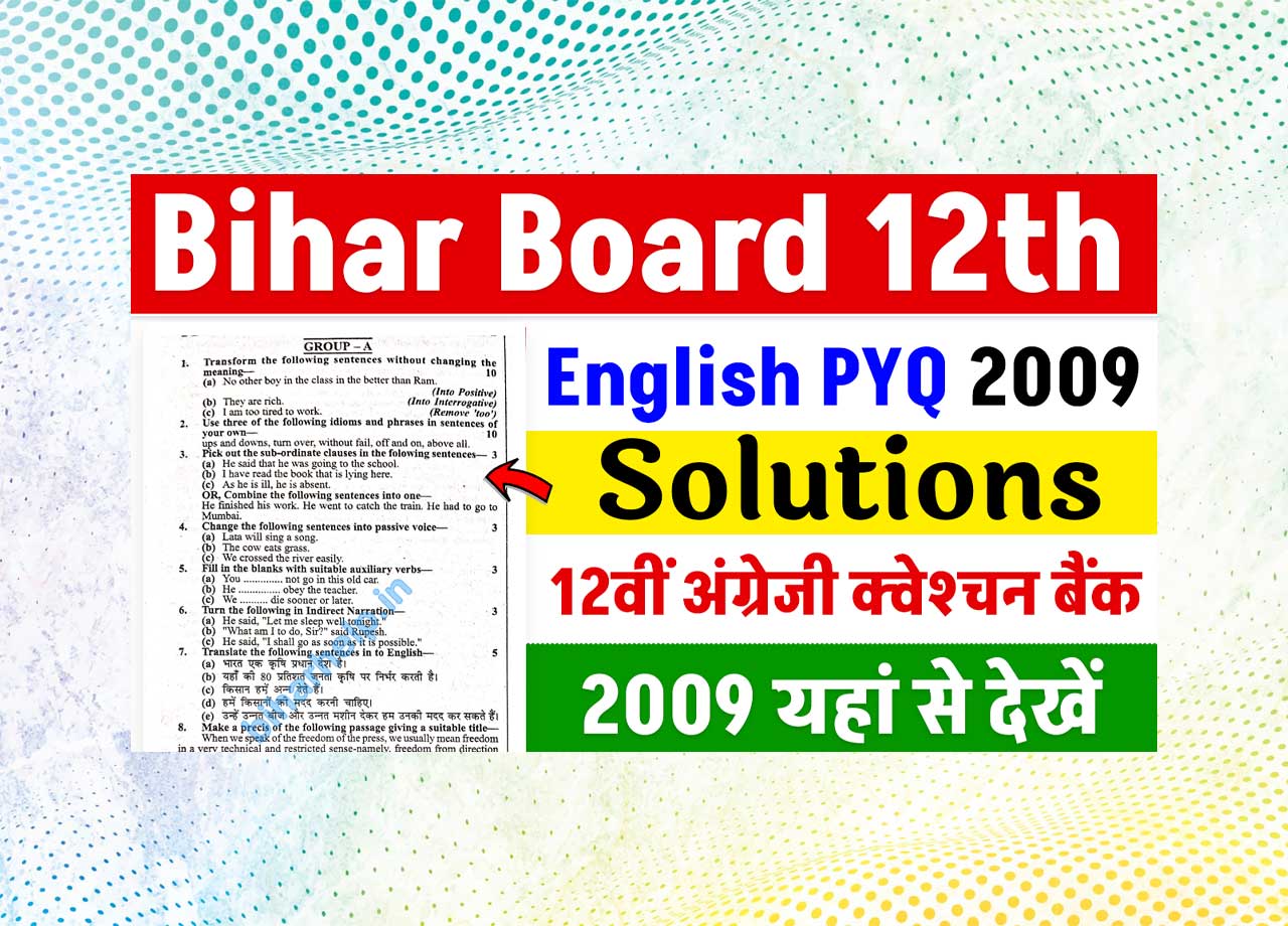 इस पोस्ट में हम आपके लिए लेकर आए हैं Bihar Board twelfth English PYQ 2009 की पूरी जानकारी और डाउनलोड लिंक।