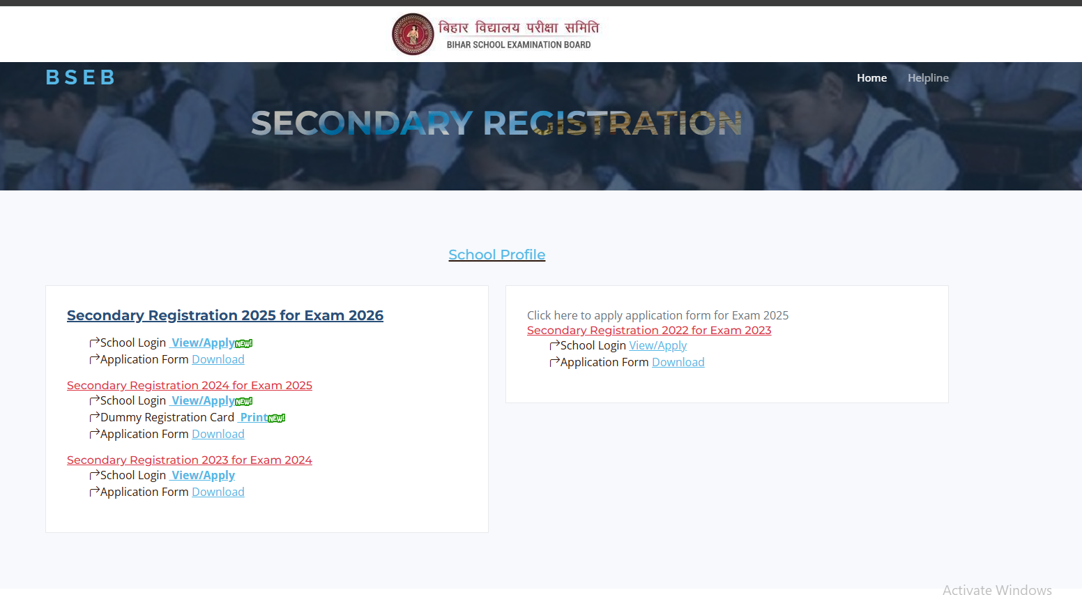 Direct Hyperlink To Bihar Board Matric Examination Registration 2026 |