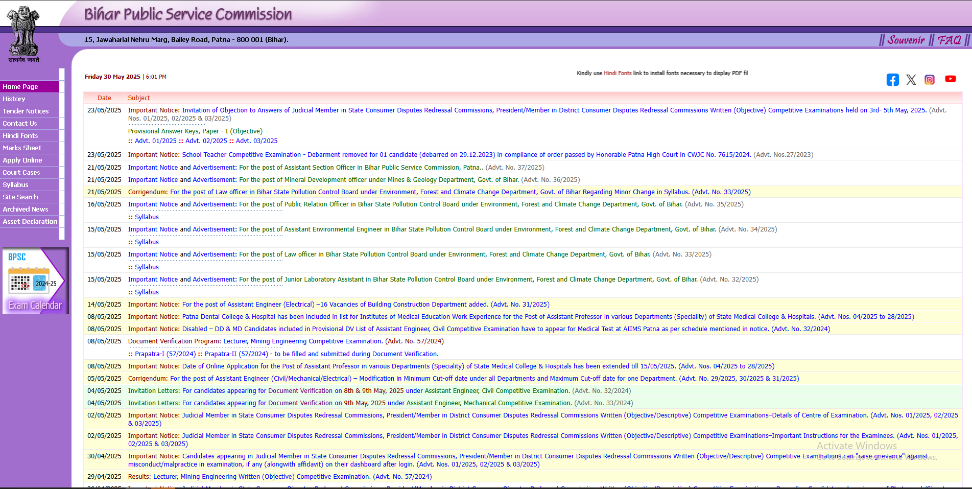 - BPSC LDC Examination Date 2025 Discover को चेक व डाउनलोड करने के लिए सबसे पहले आपको बिहार पब्लिक सर्विस कमीशन के Official Web site के होम – पेज पर आना होगा जो कि, इस प्रकार का होगा –