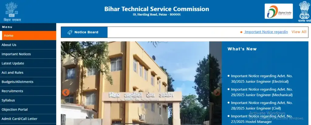 Bihar BTSC Recruitment 2025: अगर आप भी बिहार सरकार में नौकरी पाना चाहते हैं और सरकारी भर्तीयों की तैयारी कर रहे हैं, तो आपके लिए एक अच्छी खबर आ गई है। Bihar Technical Service Fee (BTSC) ने 04 अक्टूबर 2025 को एक शार्ट नोटिफिकेशन जारी किया है। इस नोटिफिकेशन में BTSC ने अलग – अलग विभागों में जूनियर इंजीनियर, वर्क इंस्पेक्टर, डेंटल हाइजीनिस्ट (Dental Hygienist) और हॉस्टल मैनेजर जैसे पदों के लिए आवेदन मांगे हैं।
