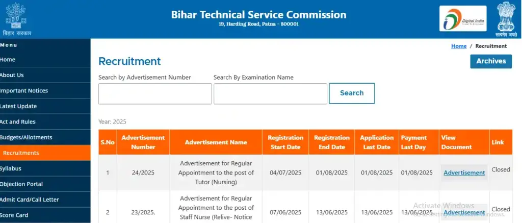 सबसे पहले आधिकारिक वेबसाइट btsc.bihar.gov.in पर जाएं।