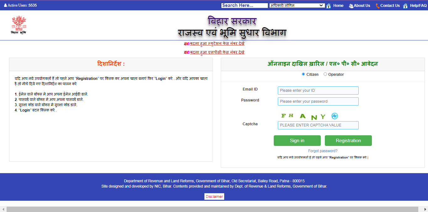 • Bihar Jamin Daakhil Kharij Standing चेक करने के लिए सबसे पहले आपको इसके Official Web site के होम – पेज पर आना होगा जो कि, इस प्रकार का होगा –