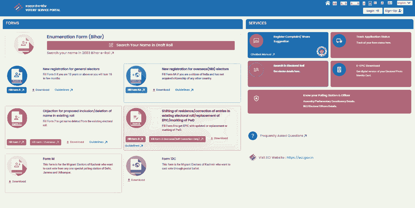 • मतदाता सूची मे नया नाम जोड़ने, विलोपन करने, स्थानांतरण एंव संशोधन की स्थिति मे voters.eci.gov.in पर क्लिक करें,