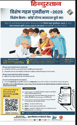 - आपको बता दें कि, BIHAR SIR 2025 का मूल लक्ष्य है ” सर्वप्रथम समावेशन – कोई भी योग्य मतदाता छूटे ना। “