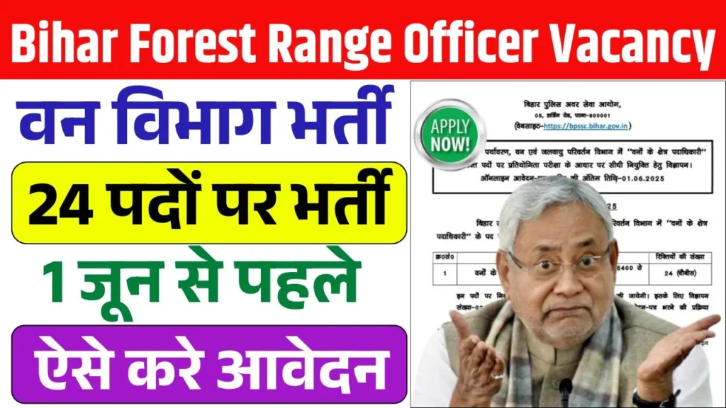 बिहार में वन क्षेत्र अधिकारी (Forest Vary Officer) के पद पर नौकरी पाने का सपना देख रहे उम्मीदवारों के लिए एक शानदार अवसर है। बिहार पुलिस अवर सेवा आयोग (BPSSC) ने Bihar Forest Vary Officer Emptiness 2025 के लिए आधिकारिक नोटिफिकेशन जारी कर दिया है। इस भर्ती के लिए ऑनलाइन आवेदन प्रक्रिया 1 मई 2025 से शुरू हो चुकी है।
