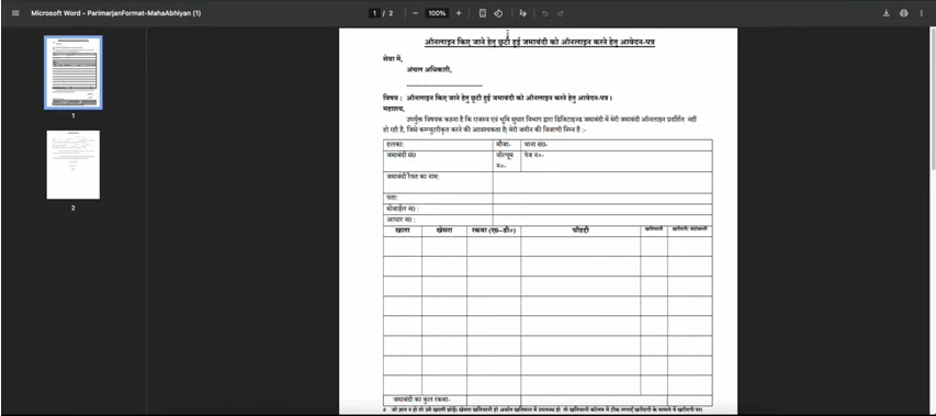 - छुटी हुई जमाबंदी को ऑनलाइन चढ़वाने हेतु आवेदन प्रपत्र आदि।