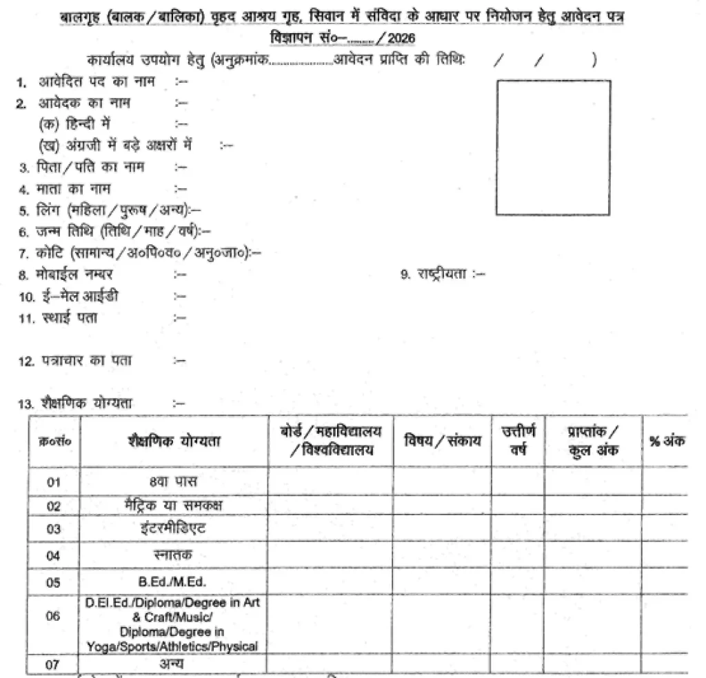 - लिफाफे पर मोटे अक्षरों में “बालगृह (बालक) यूनिट-01 एवं 02 में नियोजन हेतु आवेदन पत्र, विज्ञापन संख्या एवं पद का नाम” लिखें।
