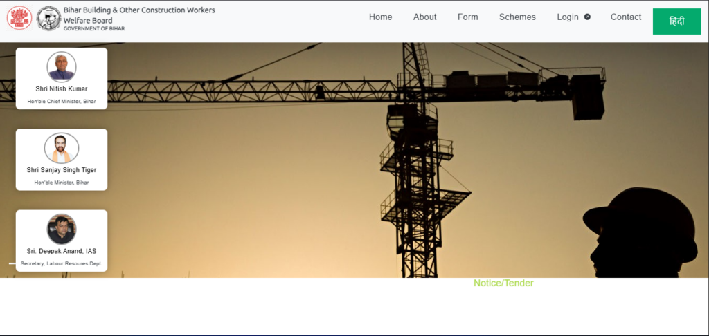 - सबसे पहले Bihar Labour Card की आधिकारिक वेबसाइट के होम पेज पर जाएँ।
