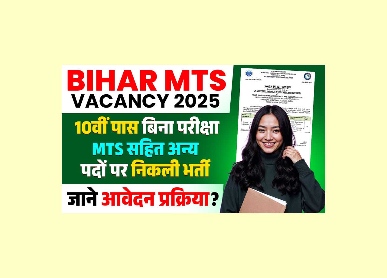 Bihar MTS Emptiness 2025: यदि आप भी 10वीं पास है और मल्टी टास्किंग स्टॉफ ( MTS ) सहित अन्य पदों पर नौकरी प्राप्त करना चाहते है तो आपके लिए TATA MEMORIAL CENTRE द्धारा HOMI BHABHA CANCER HOSPITAL AND RESEARCH CENTER MUZAFFARPUR (BIHAR) के लिए प्रोजेक्ट बेस्ड व ऑन कॉन्ट्रेक्ट बेस्ड बिना परीक्षा डायरेक्ट भर्ती निकाली गई है जिसमे अप्लाई करके आप नौकरी प्राप्त कर सकते है और इसीलिए हम, आपको विस्तार से Bihar MTS Emptiness 2025 के बारे मे बतायेगें जिसके लिए आपको अन्त तक हमारे साथ बने रहना होगा ताकि आप पूरी – पूरी जानकारी प्राप्त कर सकें।