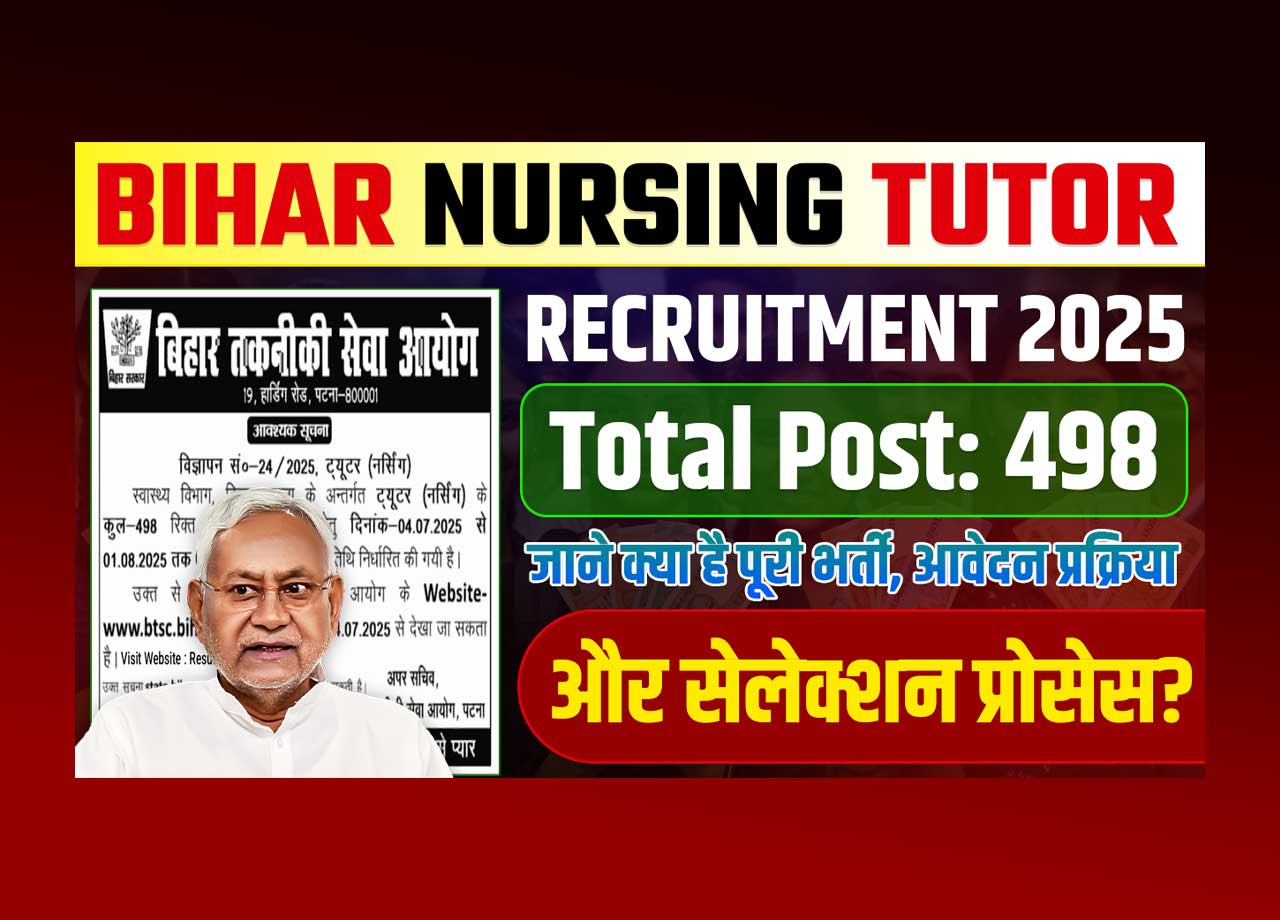 सभी आवेदक जो कि, Bihar Nursing Tutor Recruitment 2025 के तहत रिक्त कुल 498 पदों पर भर्तियां की जाएगी जिसकी पूरी जानकारी हम, आपको इस आर्टिकल मे प्रदान करेगें।