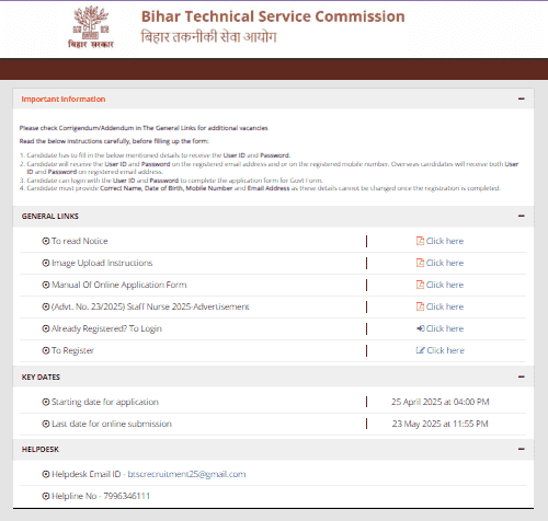 भर्ती से जुड़ी सही और पूरी जानकारी केवल तब मिलेगी जब बिहार तकनीकी सेवा आयोग (BTSC) की तरफ से ऑफिशियल नोटिफिकेशन जारी किया जाएगा।