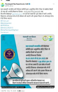 यहां पर हम, आपको बताना चाहते है कि, Bihar Nyaya Mitra Benefit Record 2025 को 15 फरवरी, 2025 ( ऑनलाइन अप्लाई करने की लास्ट डेट) के बाद जल्द से जल्द जारी किया जाने वाला है जिसको लेकर जल्द ही पंचायती राज विभाग, बिहार सरकार द्धारा नोटिस जारी किया जाएगा जिसकी हम आपको त्वरित जानकारी, यथा समय प्रदान करेगें तथा