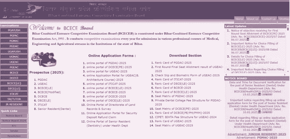 • Bihar Paramedical 1st Seat Allotment 2025 को चेक व डाउनलोड करने के लिए सबसे पहले आपको इसकी Official Web site के होम – पेज पर आना होगा जो कि, इस प्रकार का होगा –