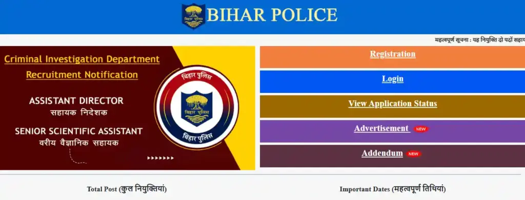 Login Portal for Bihar Police CID Recruitment 2025