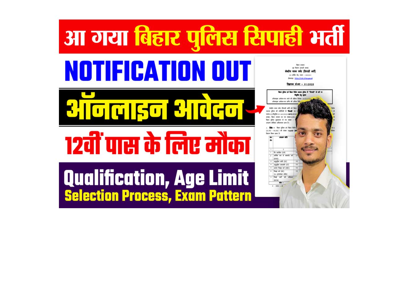 12वीं पास हेतु बिहार पुलिस ने निकाली 19,000+ पदोे बम्पर सिपाही ( कॉन्स्टेबल ) भर्ती, जाने क्या है पूरी भर्ती, आवेदन प्रक्रिया औऱ अप्लाई करने की लास्ट डेट – Bihar Police Constable Emptiness 2025?