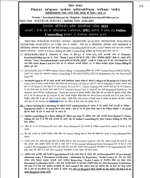 बिहार पॉलिटेक्निक काऊंसलिंग 2025 का नोटिस हुआ जारी, जाने कैसे करें च्वाईस लॉक और वैरिफिकेशन के लिए किन डॉक्यूमेंट्स की पड़ेगी जरुरत – Bihar Polytechnic Counselling 2025?