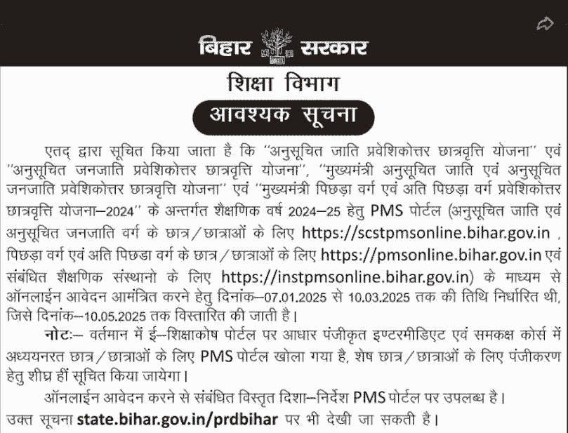 सत्र 2025 – 26 के लिए बिहार पोस्ट मैट्रिक स्कॉलरशिप हेतु शुरु – Bihar Put up Matric Scholarship 2025?