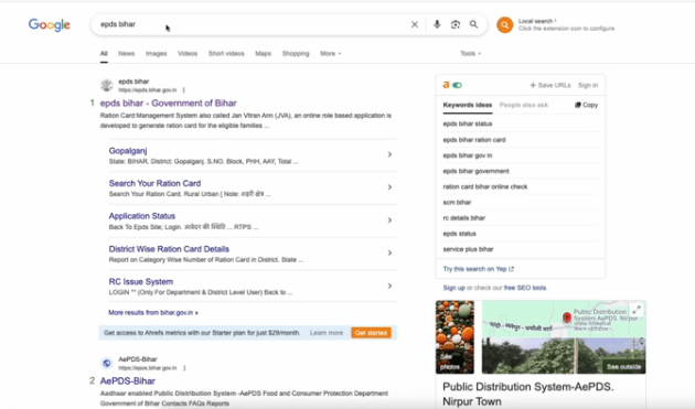 - यहां पर आने के बाद आपको सर्च बॉक्स मे EPDS Bihar को टाईप करके सर्च करना होगा जिसके बाद आपको कुछ इस प्रकार का रिजल्ट देखने को मिलेगा –