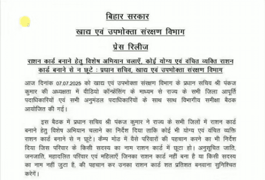 विभाग का आदेश, राशन कार्ड बनाने हेतु विशेष अभियान चलाए – Bihar Ration Card Apply Paperwork?