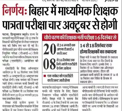 Bihar STET 2025 के लिए ऑनलाइन आवेदन प्रक्रिया 8 सितंबर 2025 से शुरू होगी और यह 25 सितंबर 2025 तक चलेगी। इसलिए हम, आपको सलाह देंगे कि, समय रहते अपनी तैयारी कर लें और जरूरी दस्तावेज तैयार रखें ताकि आप बिना किसी दिक्कत के अप्लाई कर सकें। TRE 4 परीक्षा 16 दिसंबर 2025 से 19 दिसंबर 2025 तक आयोजित की जाएगी। इसके बाद परिणाम 20 जनवरी 2026 से 24 जनवरी 2026 तक घोषित होगा। हम, आपको सुझाव देंगे कि, इन तारीखों को नोट कर लें और अपनी तैयारी के अनुसार प्लानिंग करें। Bihar STET 2025 के लिए आवेदन करते समय आपको कुछ जरूरी दस्तावेज तैयार रखने होंगे, जैसे 10वीं का प्रमाण पत्र, स्नातक और बीएड का अंक पत्र, और यदि लागू हो तो जाति या दिव्यांगता प्रमाण पत्र। हम, आपको सलाह देंगे कि, इन दस्तावेजों को स्कैन करके रख लें ताकि आवेदन प्रक्रिया में आसानी हो। STET और TRE 4 अलग-अलग परीक्षाएं हैं, इसलिए इनके लिए अलग-अलग फॉर्म भरने होंगे। STET के लिए 8 से 25 सितंबर 2025 तक और TRE 4 के लिए बाद में नोटिफिकेशन के अनुसार आवेदन करना होगा। हम, आपको सुझाव देंगे कि, दोनों प्रक्रियाओं की तारीखों को ध्यान से चेक करें। Bihar STET 2025 का रिजल्ट 1 नवंबर 2025 को घोषित किया जाएगा। हम, आपको सलाह देंगे कि, ऑफिशियल वेबसाइट पर नजर रखें और रिजल्ट के लिए तैयार रहें ताकि आगे की प्रक्रिया में देरी न हो। Bihar STET 2025 के लिए आवेदन कब से शुरू होगा?