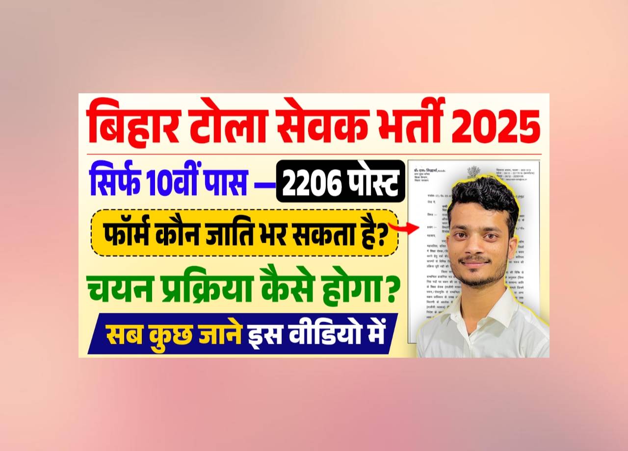 उपरोक्त सभी योग्यताओे को पूरा करके आप आसानी से बिहार टोला सेवक भर्ती 2025 मे अप्लाई कर सकते है और नौकरी प्राप्त कर सकते है।