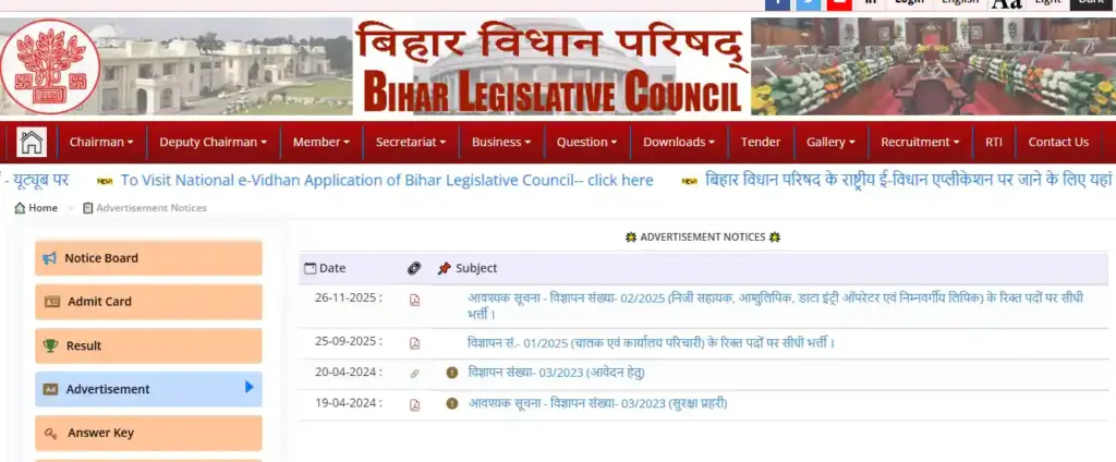 Direct Hyperlink To Obtain Official Commercial of Bihar Vidhan Parishad Recruitment 2025 |