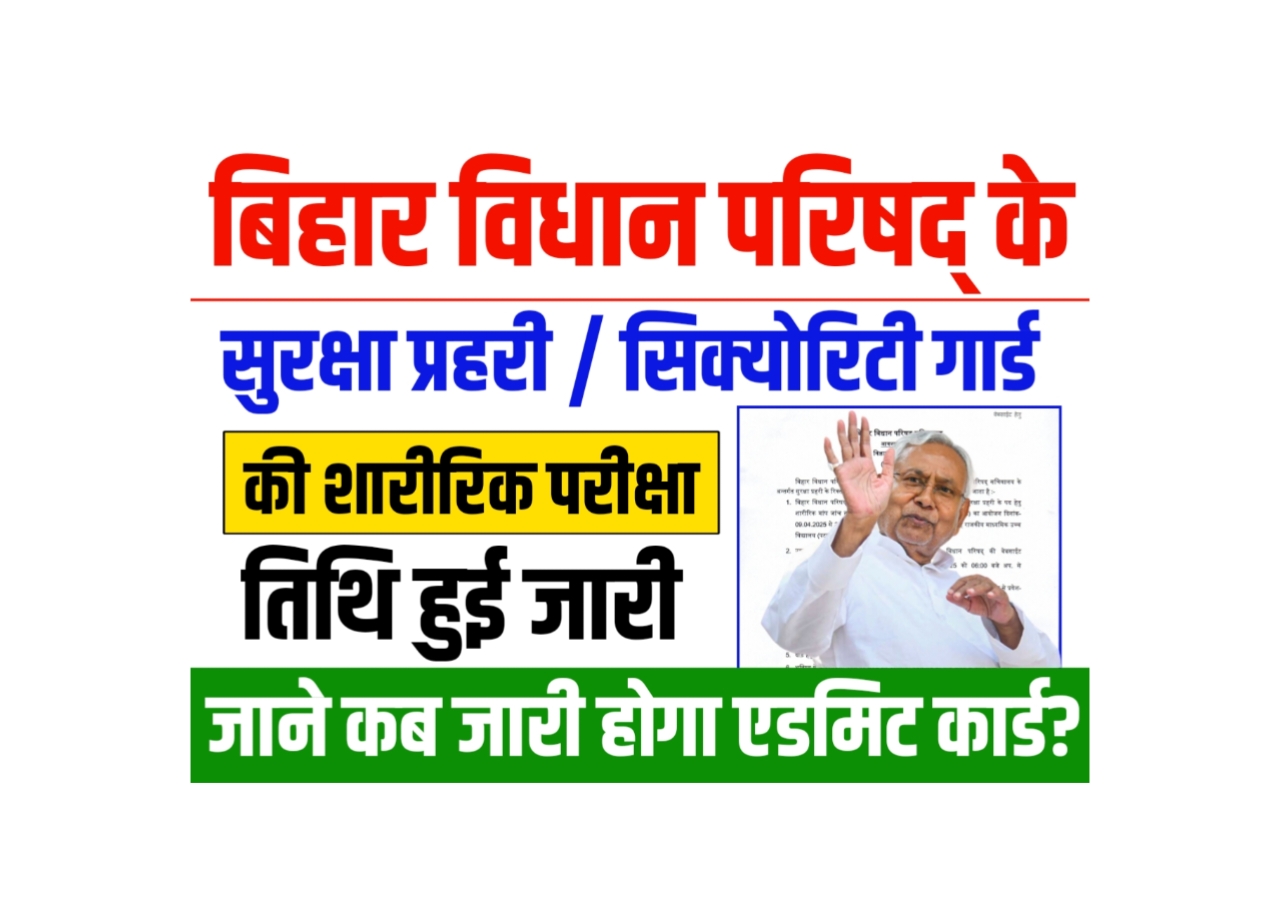 बिहार विधान परिषद् के सुरक्षा प्रहरी / सिक्योरिटी गार्ड की शारीरिक परीक्षा तिथि हुई जारी, जाने कब जारी होगा एडमिट कार्ड और कैसे करना होगा डाउनलोड – Bihar Vidhan Parishad Sachivalaya Safety Guard Admit Card 2025?