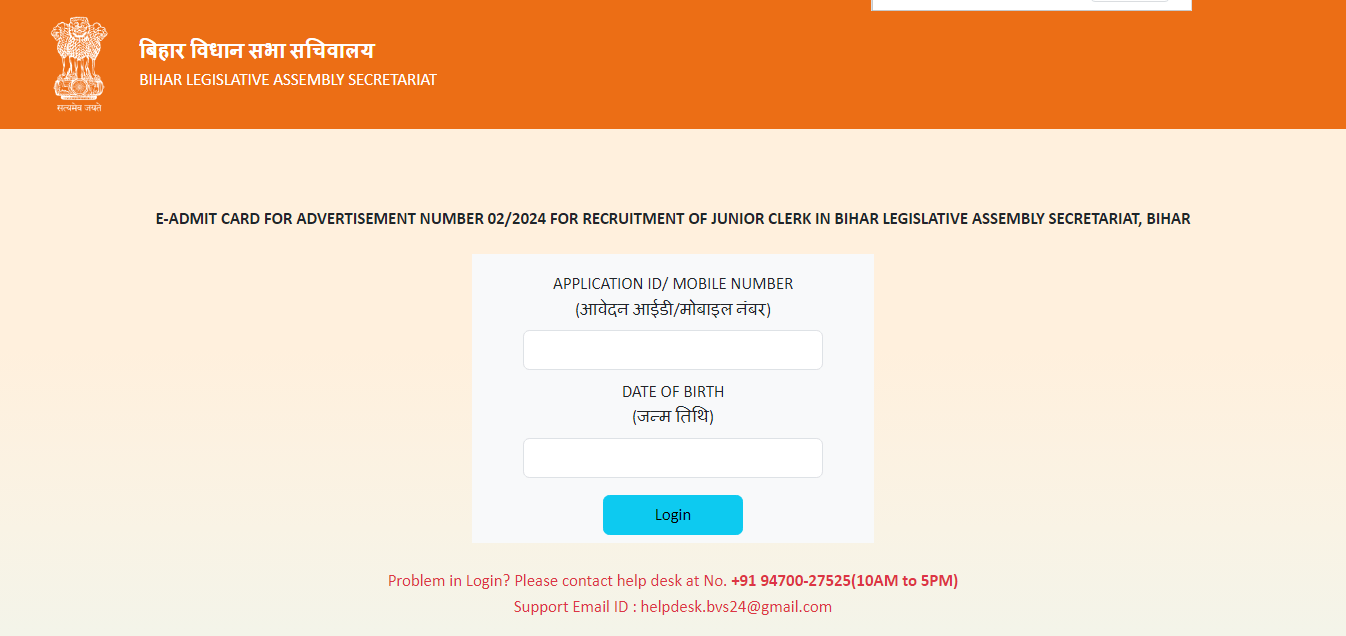 Direct Hyperlink To Obtain Bihar Vidhan Sabha Junior Clerk Admit Card 2025 |