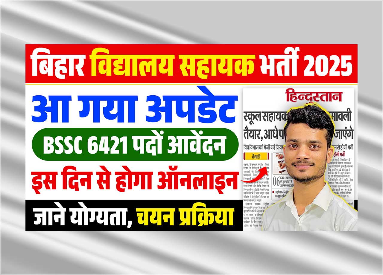 आज के इस आर्टिकल में हम आप सभी को Bihar Vidyalaya Sahayak Bharti 2025 के बारे में बताने वाले है। यदि आप भी बिहार विद्यालय सहायक भर्ती के लिए इच्छुक है, और आवेदन करना चाहते है, तो आपके लिए यह लेख बहुत ही उपयोगी है। इसिलए आप इसे पूरे अंत तक पढ़ें।