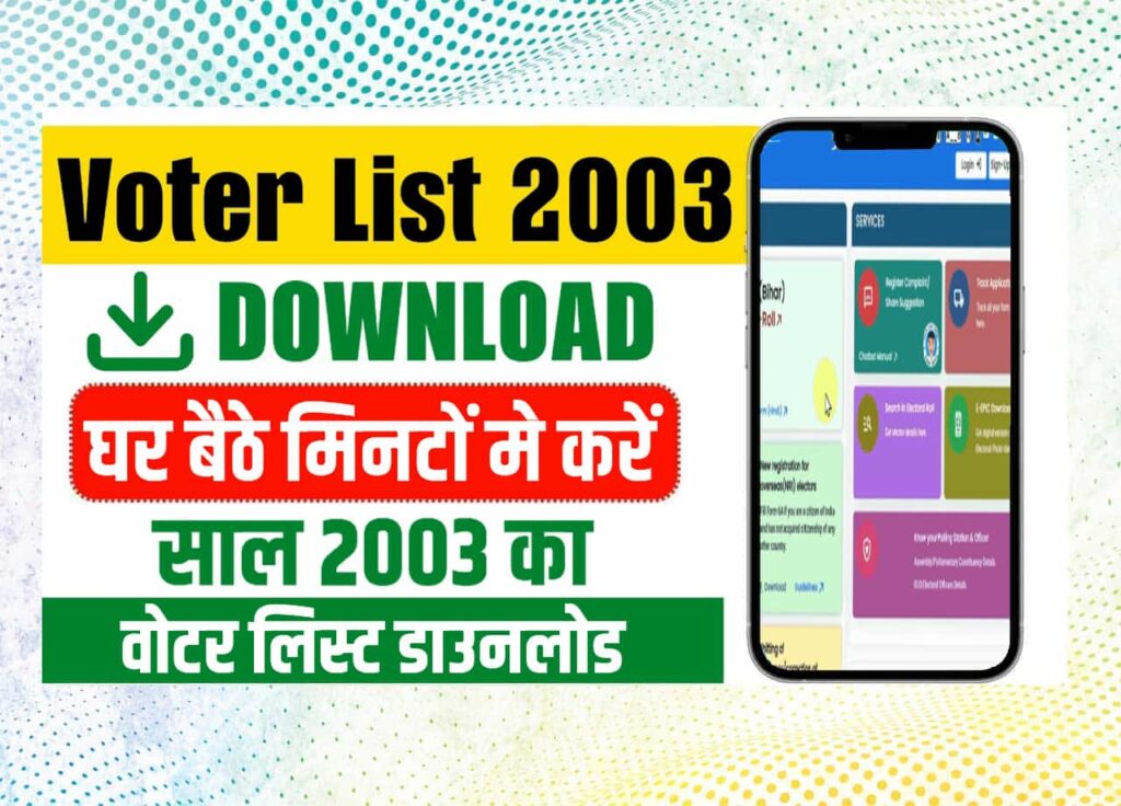 जी हां, आप सभी मतदाता आसानी से घर बैठे साल 2003 के वोटर लिस्ट को चेक व डाउनलोड कर सकते है।