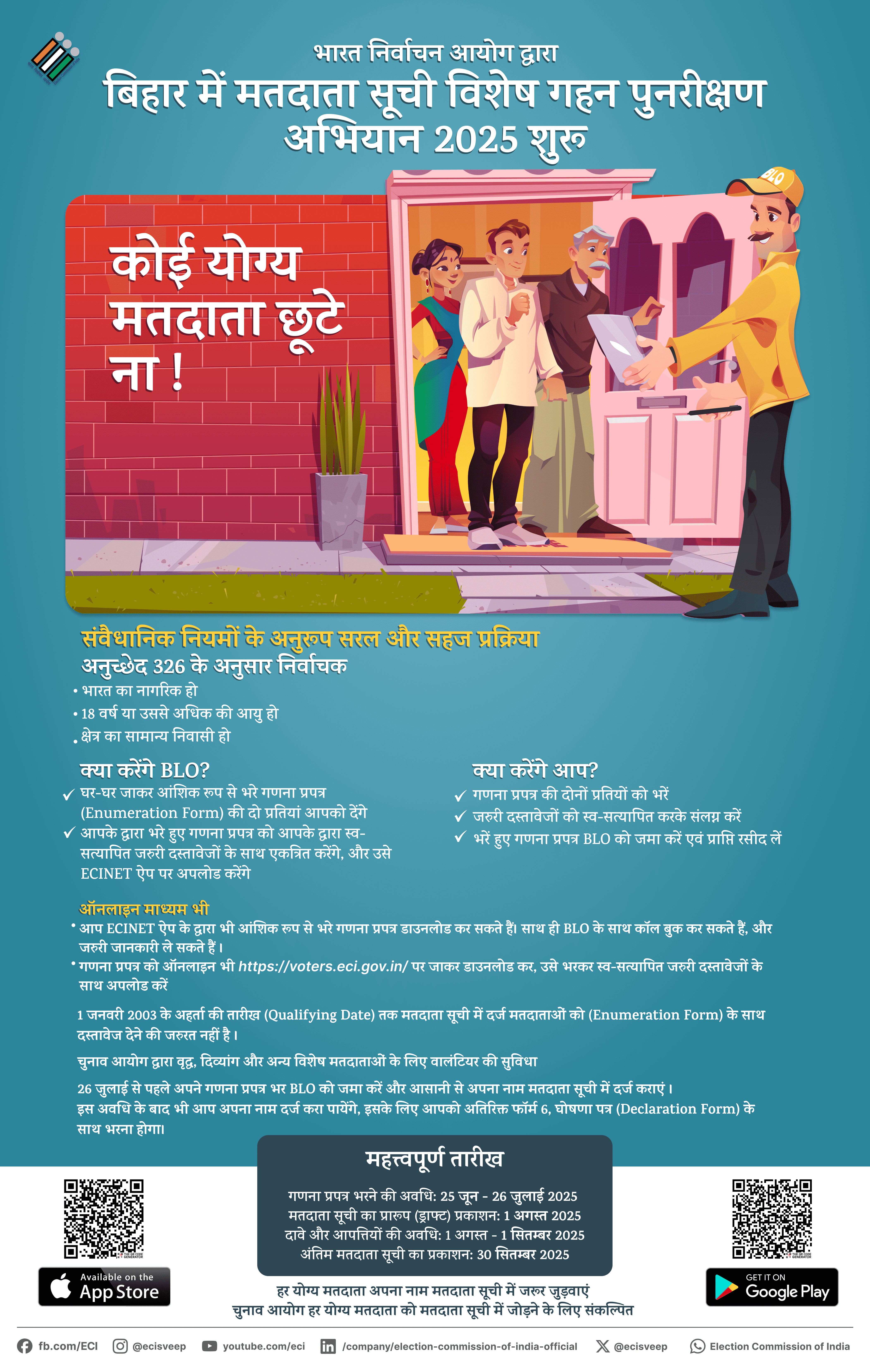 • Bihar Voters Enumeration Type 2025: Bihar Ganna Prapatra – मतदाता एन्यूमरेशन फॉर्म कौन भर सकता है, कैसे भरना है, जाने पूरी प्रक्रिया