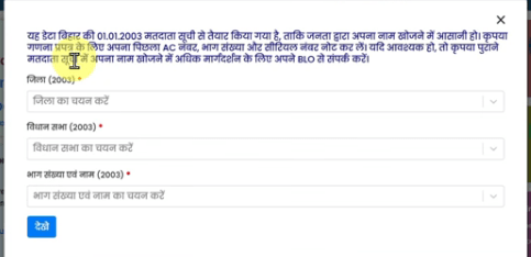 • अब यहां पर आपको Search Your Identify In 2003 Bihar E – Roll का विक्प मिलेगा जिस पर आपको क्लिक करना होगा,