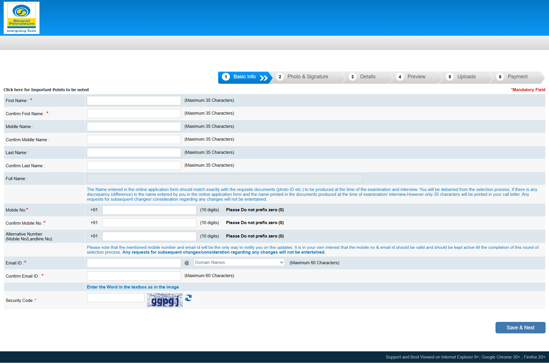 BPCL Entry Degree Emptiness 2025 Submit Particulars