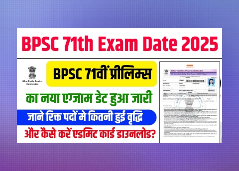 बीपीएससी 71वीं प्रीलिम्स का नया एग्जाम डेट हुआ जारी, जाने रिक्त पदों मे कितनी हुई वृद्धि और कैसे करें एडमिट कार्ड डाउनलोड – BPSC 71th Examination Date 2025?