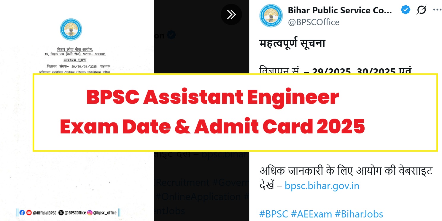 बीपीएससी ने किया सहायक अभियन्ता / असिसटेन्ट इंजीनियर का एग्जाम डेट जारी, जाने कब होगा एडमिट कार्ड जारी और कैसे कर पायेगें डाउनलोड – BPSC Assistant Engineer Admit Card 2025?