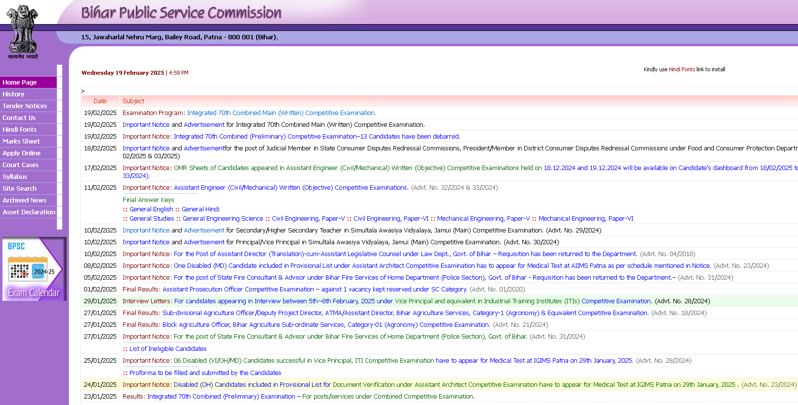 - BPSC Junior Laboratory Assistant Syllabus 2025 को चेक व डाउनलोड करने के लिए सबसे पहले बिहार लोक सेवा आयोग की आधिकारीक वेबसाइट के होम – पेज पर आना होगा जो कि, इस प्रकार का होगा –