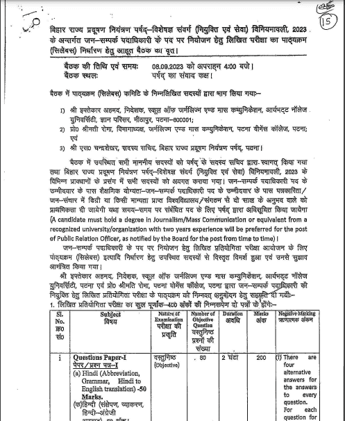 - BPSC Public Relation Officer Syllabus 2025: Obtain Newest Examination Sample, Topic-Sensible Syllabus PDF