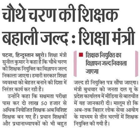 चतुर्थ चरण शिक्षक नियुक्ति प्रतियोगिता परीक्षा |