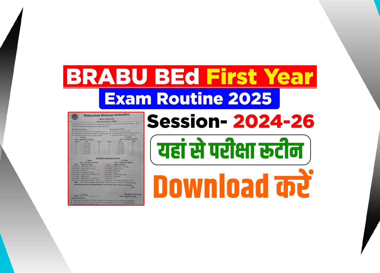 BRABU BEd First Yr Examination Routine 2025 – नमस्कार दोस्तों, यदि आप भी बाबासाहेब भीमराव अम्बेडकर बिहार विश्वविद्यालय, मुजफ्फरपुर से शैक्षणिक सत्र 2024-26 से बीएड में नामांकन लिए है, तो आपके लिए बहुत बड़ी खुशखबरी हैं। यूनिवर्सिटी ने अधिकारिक रूप से प्रथम वर्ष के परीक्षा रूटीन को जारी कर दिया हैं। सभी विद्यार्थी इस लेख के माध्यम से परीक्षा रूटीन को डाऊनलोड कर पाएंगे। एवं परीक्षा से संबंधित सारी जानकारी प्राप्त कर पाएंगे। इसलिए लेख को ध्यान पूर्वक शुरू से अंत तक पढ़े……