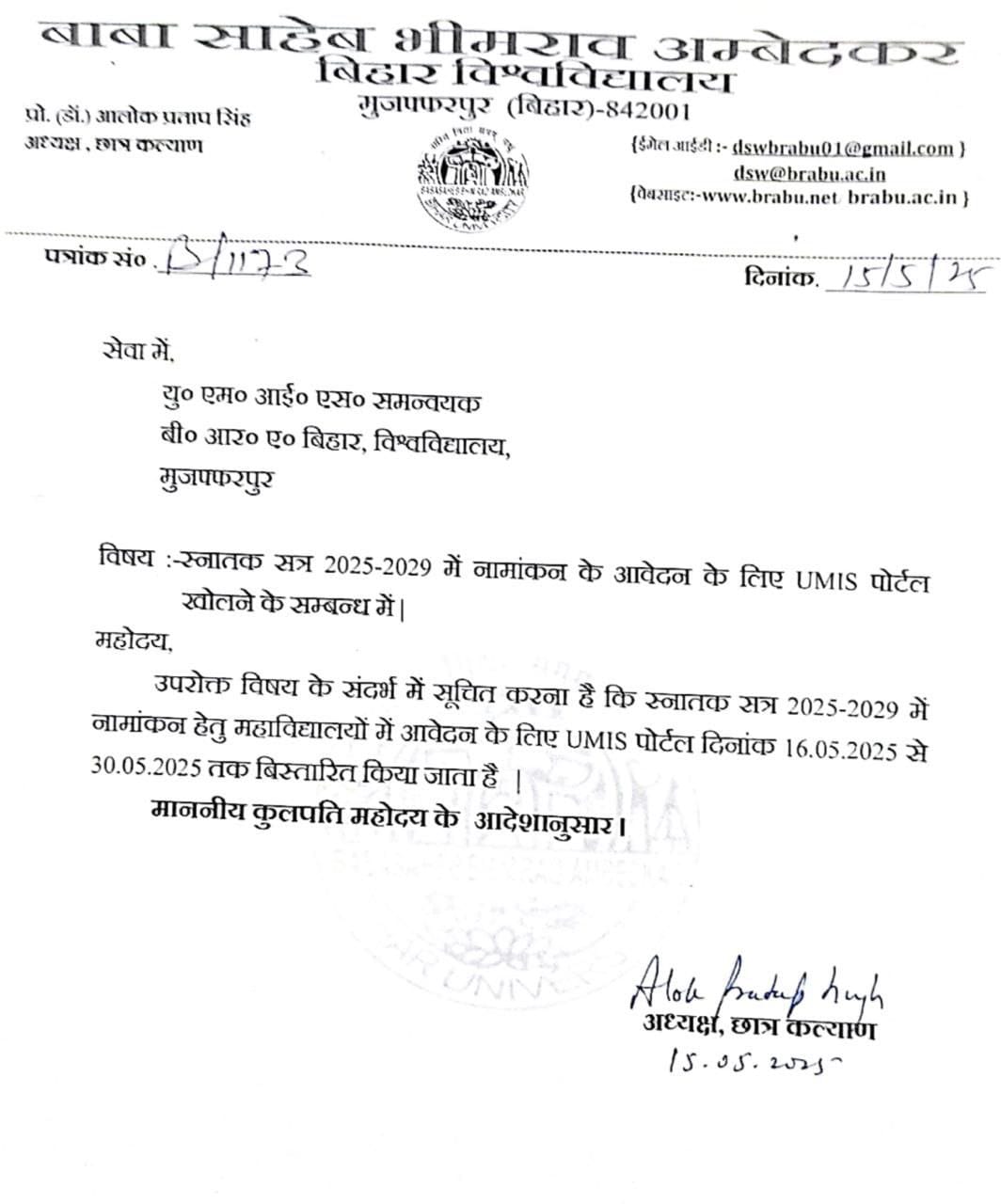 बीआरबीयू के DSW प्रोे. आलोक प्रताप सिंह जी ने क्या कहा है – BRABU UG Admission 2025-29?