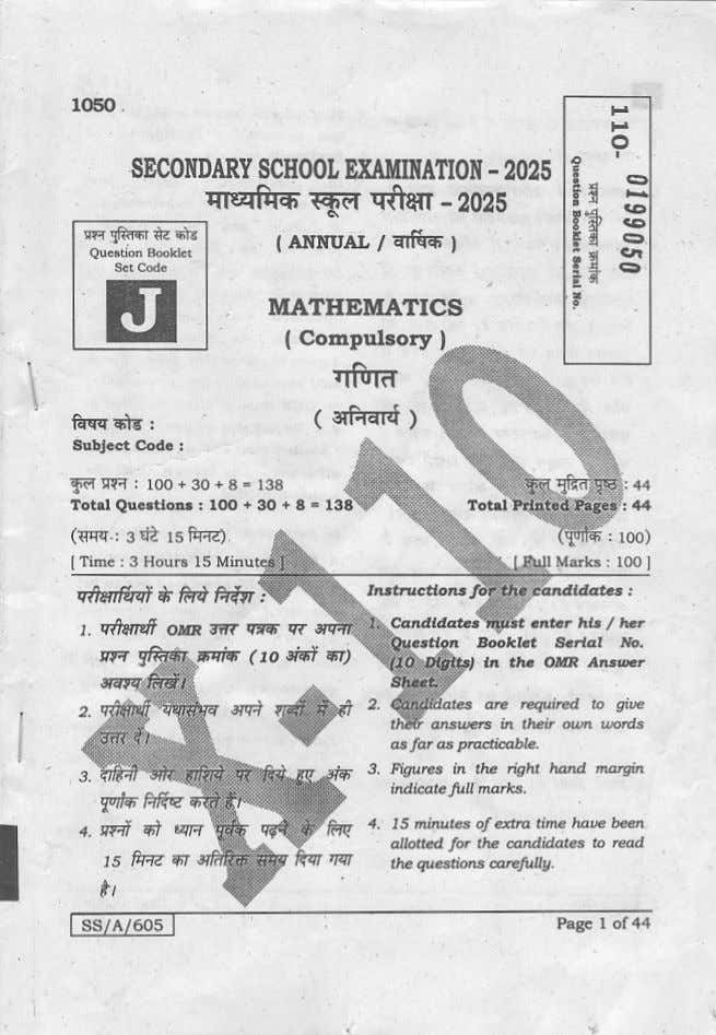 Bihar Board tenth Math Examination 2025 Query Paper Obtain ~ बिहार बोर्ड 10वीं गणित क्वेश्चन पेपर 2025 डाऊनलोड