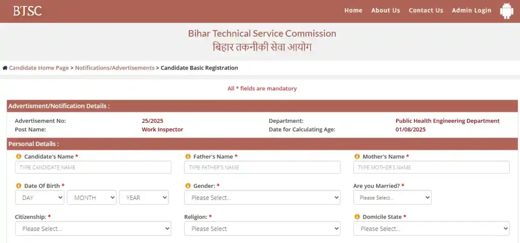 Bihar BTSC Work Inspector Recruitment 2025: Notification Particulars