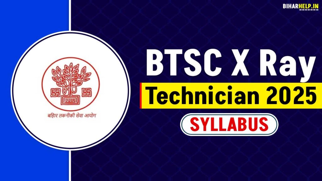 BTSC X Ray Technician Syllabus 2025: बिहार तकनीकी सेवा आयोग की आधिकारिक वेबसाइट पर एक्स एक्स-रे तकनीशियन सिलेबस, परीक्षा पैटर्न के साथ जारी किया गया है। जो व्यक्ति भर्ती परीक्षा में शामिल होने जा रहे हैं, वे यहाँ से BTSC X Ray Technician Syllabus 2025 PDF डाउनलोड कर सकते हैं। BTSC X X-ray Examination Sample के बारे में अधिक जानने के लिए यह लेख देखें –