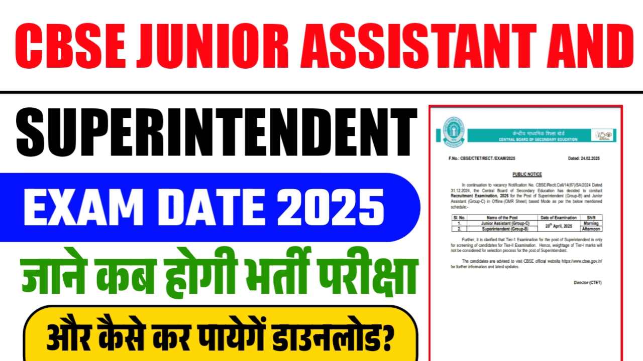सीबीएसई ने किया जूनियर असिसटेन्ट और सुप्रीटेन्डेन्ट भर्ती 2025 का एग्जाम डेट जारी, जाने कब होगी भर्ती परीक्षा और कैसे कर पायेगें एडमिट कार्ड डाउनलोड – CBSE Junior Assistant And Superintendent Examination Date 2025?