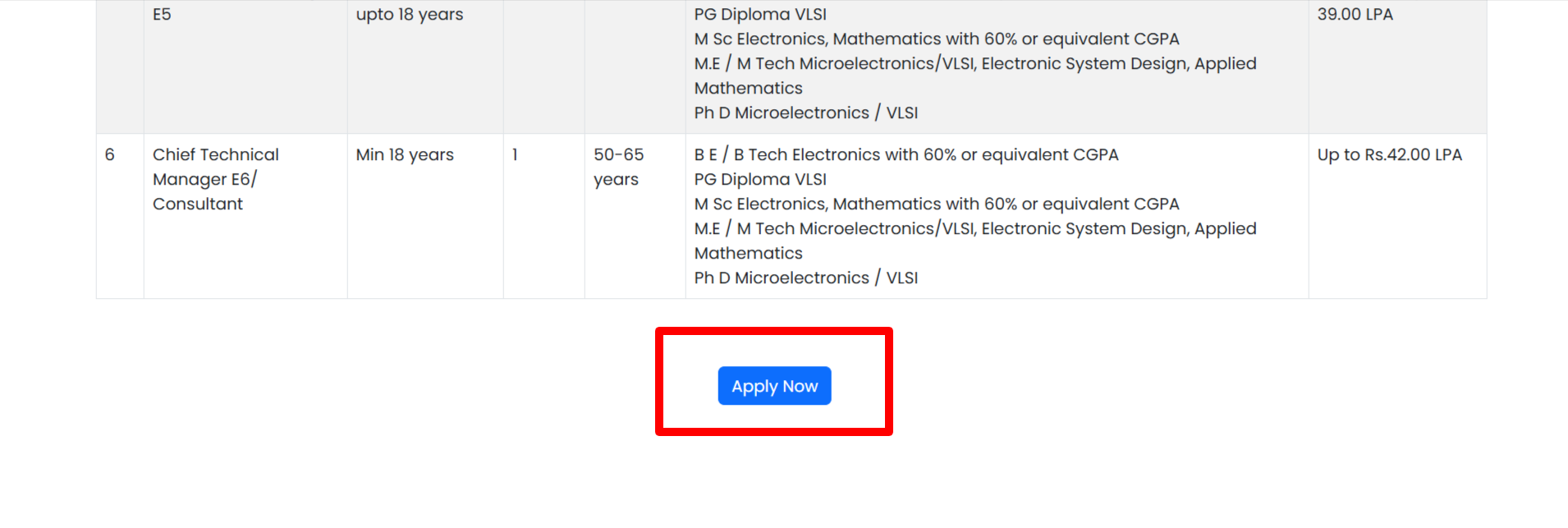 B.E./B.Tech (Electronics) OR M.Sc. (Electronics/Maths); PG Diploma / M.Tech / Ph.D. in VLSI, Microelectronics, and many others. |