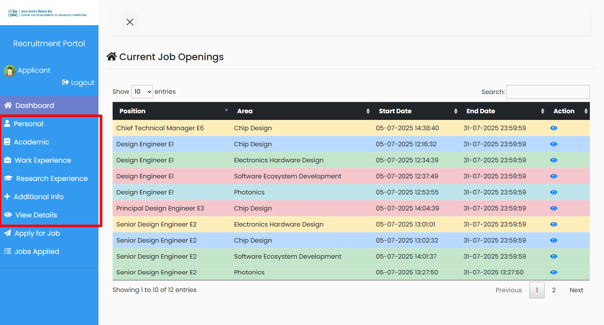 - पोर्टल पर अपनी सभी आवश्यक जानकारी एंटर करने के बाद आपको भर्ती के तहत ऑनलाइन आवेदन करने के लिए दिये गए Apply for Job के ऑप्शन पर क्लिक करना है।